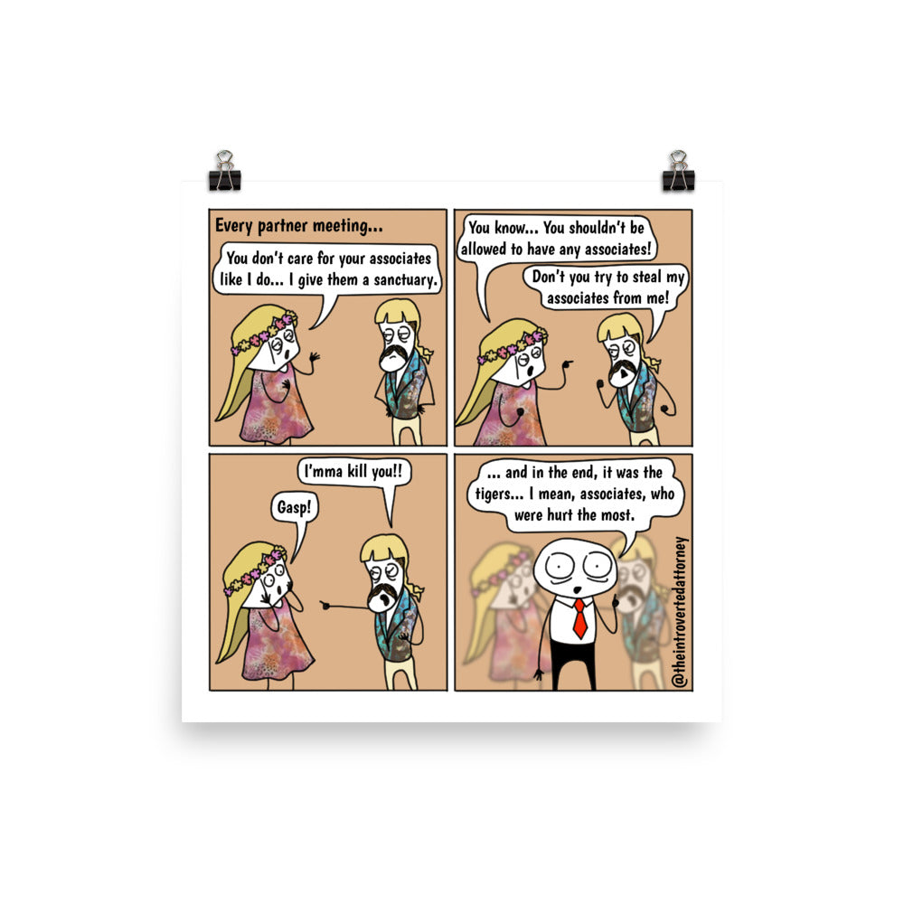 The popular Netflix documentary, Tiger King, is actually based on law firm life. Get a print of your favorite Tiger King comic.