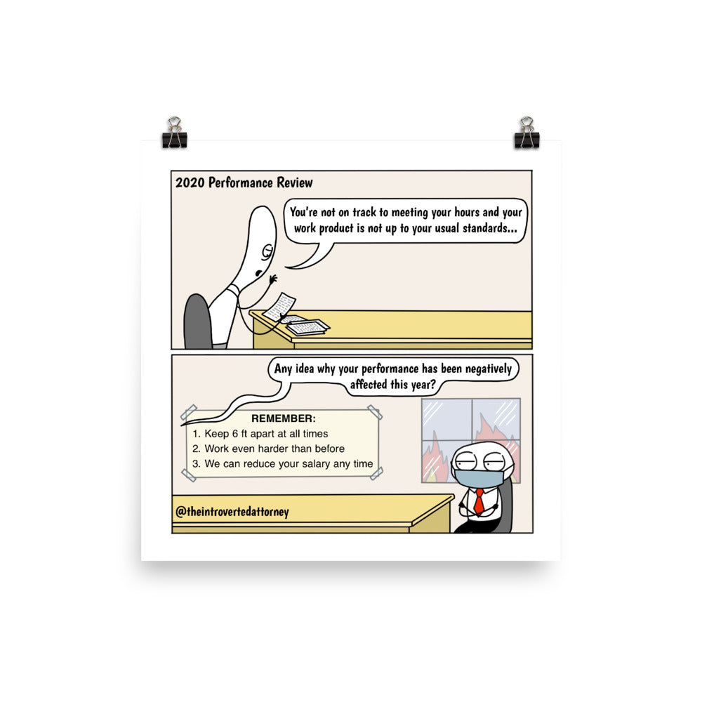 2020 Law Firm Performance Review | Funny Lawyer Comic Print (10" x 10") | Best Associate Lawyer Gifts | Full Color | The Introverted Attorney