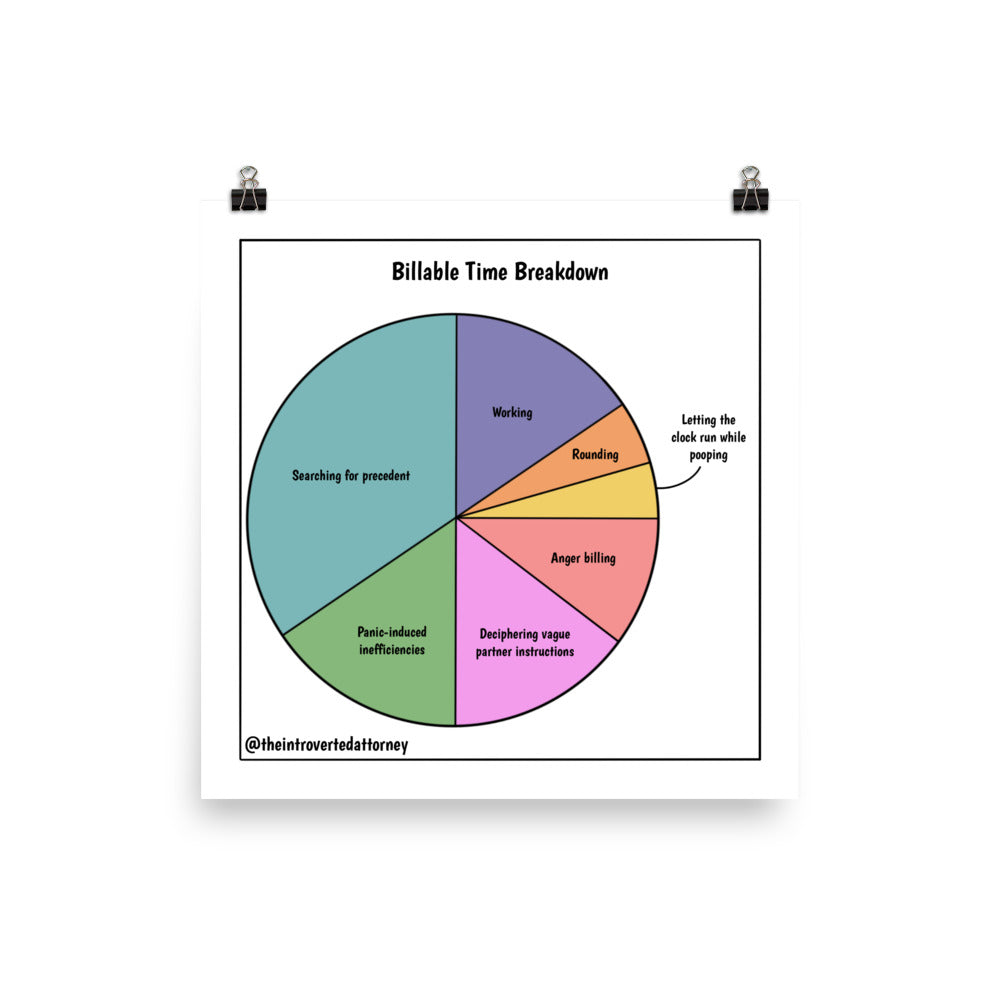 This comic print makes for a funny lawyer gift for that attorney who knows the breakdown of his or her billable hours reveals that not much actual work is getting done.