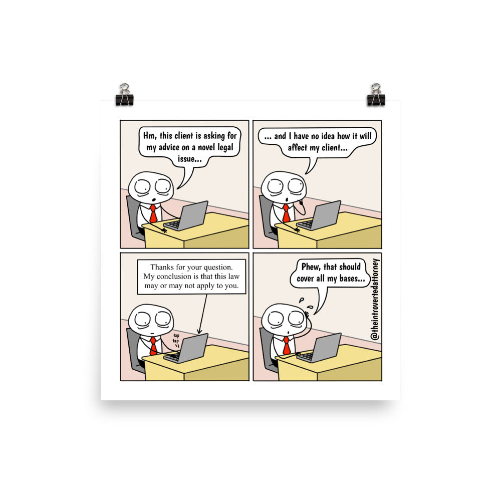 This comic print makes for a funny lawyer gift for that attorney who has ever used an over general legal statement to cover all his or her bases
