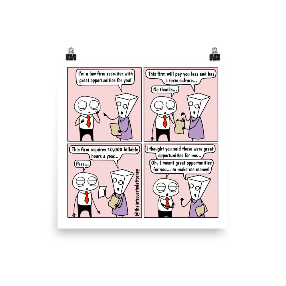 This comic print makes for a funny lawyer gift for that attorney who knows what it's like to get his or her hopes up when a law firm recruiter reaches out and is subsequently disappointed.