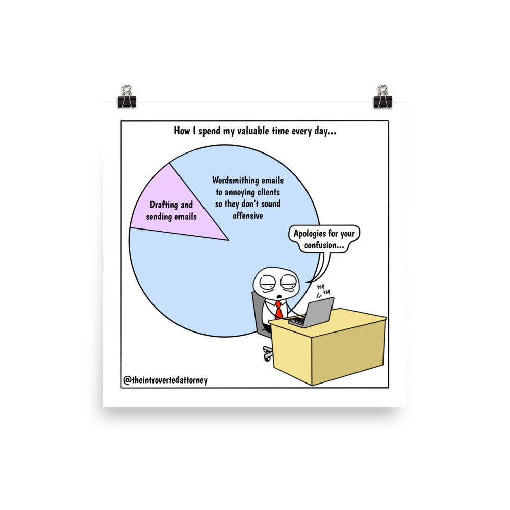 This comic print makes for a funny lawyer gift for that attorney who knows the frustration of having to draft and redraft an email to sound nicer to an annoying client.
