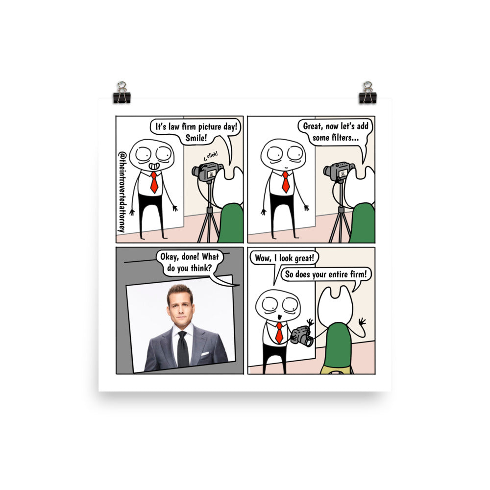 This comic print makes for a funny lawyer gift for that attorney who knows that he or she looks the best in the law firm website photo.