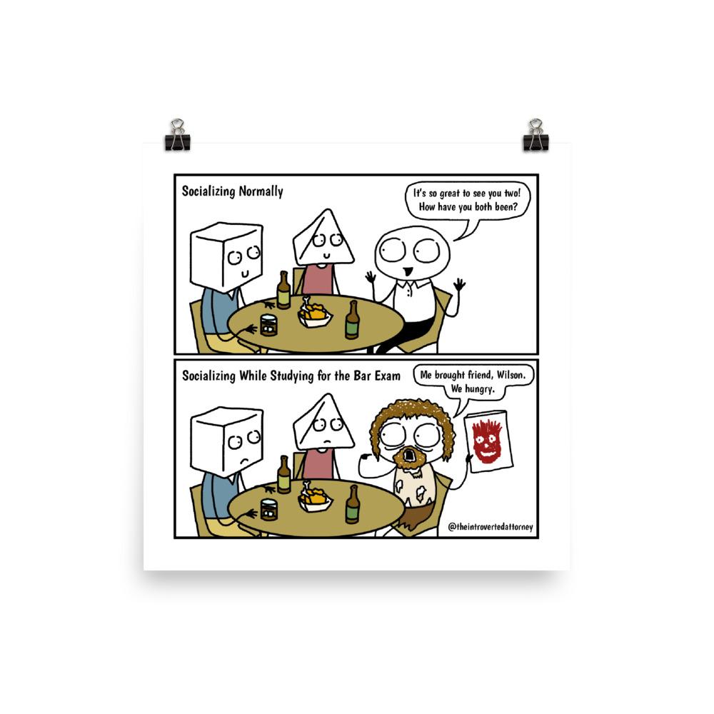 - One 5" x 5" comic print (Studying for the Bar Exam)