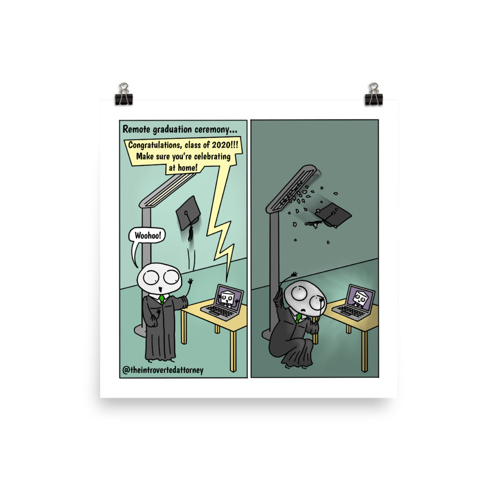 Remote Law School Graduation | Comic Print (10" x 10") | Full Color | The Introverted Attorney